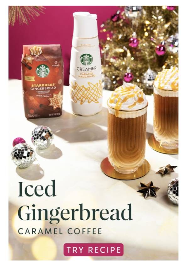 Caramel and spice are making the nice list this year. ✨ Create this luscious and rich recipe with Starbucks® Limited-Time Gingerbread Flavored Coffee and our Caramel Flavored Creamer.