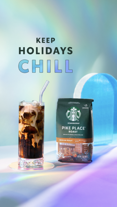 Play it cool this season. 💙 Discover your fave winter moment with sippable notes of cocoa and rich praline in Starbucks® Pike Place® Roast Coffee.